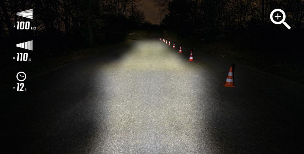 • Leistungsstarke Frontleuchte: 100 Lux Leuchtstärke mit einer Reichweite von 110 Metern