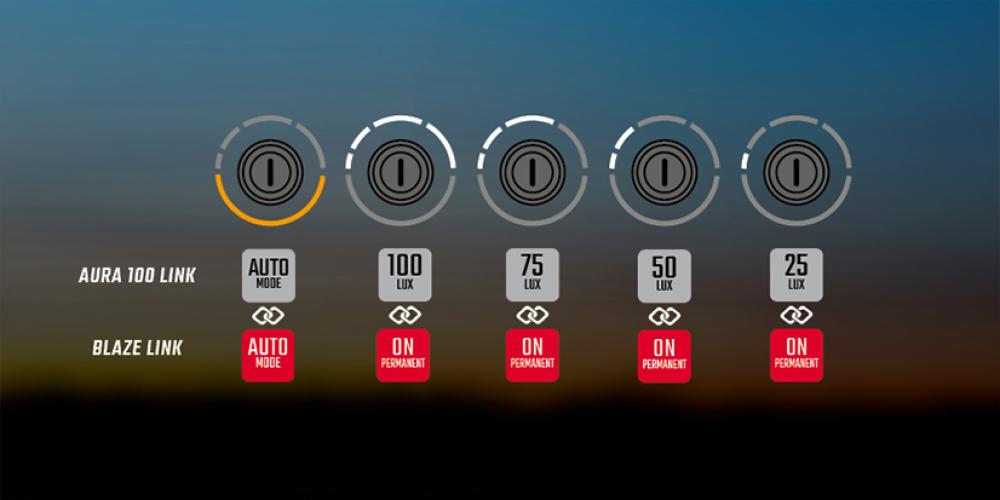 • Mehrere Leuchtmodi: Eco (25 Lux), Low (50 Lux), Mid (75 Lux), High (100 Lux) und Auto-Modus