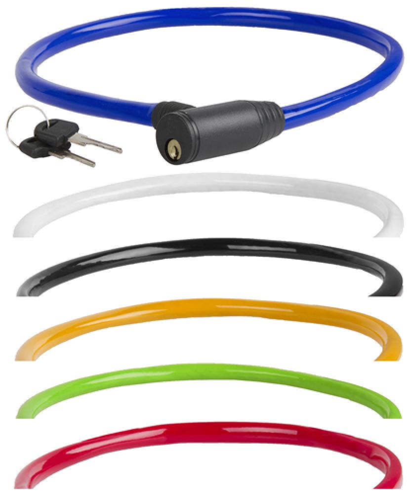 Dieses hochwertige Kabelschloss bietet optimalen Schutz für Ihr Fahrrad. Mit einer Länge von 60 cm und einem Durchmesser von 10 mm ist es flexibel und dennoch robust. Das Schloss ist mit Kunststoff ummantelt, um Lackschäden am Fahrrad zu vermeiden. Es wird mit einem Schlüsselmechanismus geliefert und ist farblich sortiert erhältlich.