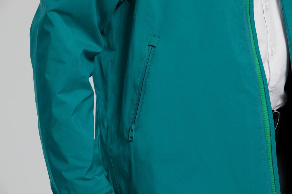 • Wasserdichter Frontreißverschluss mit Regenablauf und Kinnschutz