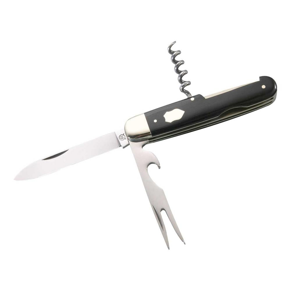 Detailliertes, hochwertig verarbeitetes Taschenmesser für vielseitige Einsätze beim Picknick, auf Touren und im Alltag. Die Kombination aus Ebenholz-Griff und 1.4034 rostfreiem Stahl bietet eine edle Optik bei gleichzeitig hoher Widerstandsfähigkeit.