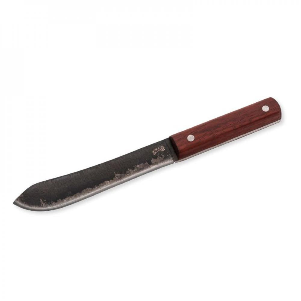 Das Herbertz Gürtelmesser Sandelholz ist ein robustes Outdoormesser für Camping, Trekking und Bushcraft. Die 5 mm starke, durchgehende Klinge aus rostfreiem 420er Stahl wurde im Schmiedezustand belassen und überzeugt mit markanter Optik und hoher Widerstandsfähigkeit. Der ergonomische Griff aus rotem Sandelholz mit zwei Nieten liegt sicher und angenehm in der Hand. Die braune Lederscheide mit Gürtelschlaufe sorgt für eine sichere, komfortable Trageweise am Gürtel. Mit einem Gesamtgewicht von ca. 419 g bietet dieses Messer eine ausgewogene Balance für präzise Arbeiten im Outdoor-Einsatz.