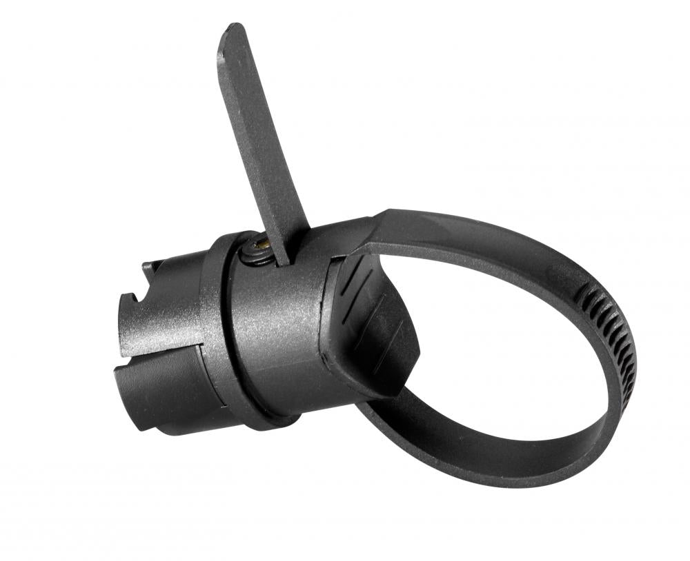 Einfache Transportbefestigung: Mit den mitgelieferten Klettverschlussbändern kann das Schloss während der Fahrt stabil am Fahrradrahmen befestigt werden.