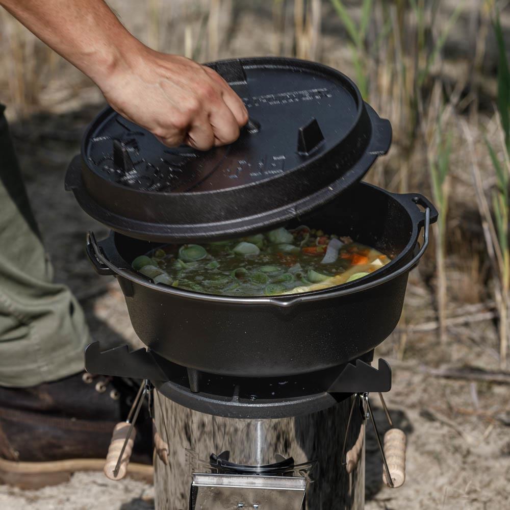 Sicherer Stand: Das Kochkreuz bietet nicht nur der Grillplatte, sondern auch anderen Kochgefäßen wie Dutch Oven, Gusseisenpfannen und Perkolatoren einen stabilen Stand.