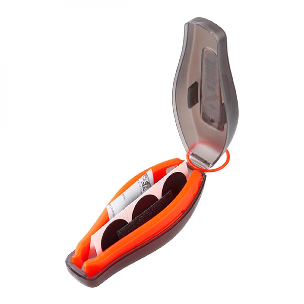 Innovatives Gehäuse: Das Set ist in einem krokodilkopfförmigen Kunststoffkoffer verpackt, der nicht nur auffällig aussieht, sondern auch funktional ist. Ein integrierter O-Ring ermöglicht das einfache Anhängen an Rucksack oder Sattelstütze.