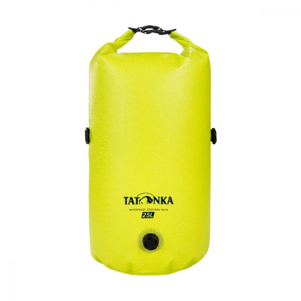 Wasserdichter Packsack mit Rollverschluss und Ventil zur Komprimierung. Aus PVC-freiem sowie PFC/PFAS-frei imprägniertem Material gefertigt. Volumen: 25 Liter.