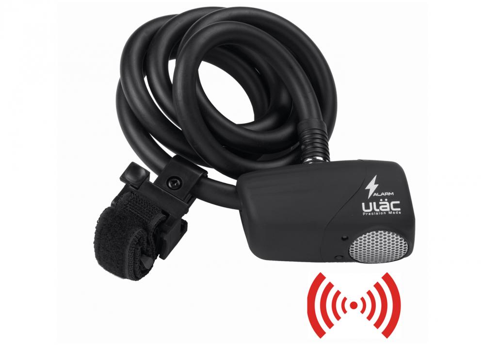 ULÄC, Schlösser, Spiralkabelschloss, Alarm, THE BEE, Länge: 1200mm, Stärke, 12mm, 110dB, Silikonummantelung, mit Rahmenhalterung (Klettverschluss), Farbe: schwarz, ULAC Security Level 5