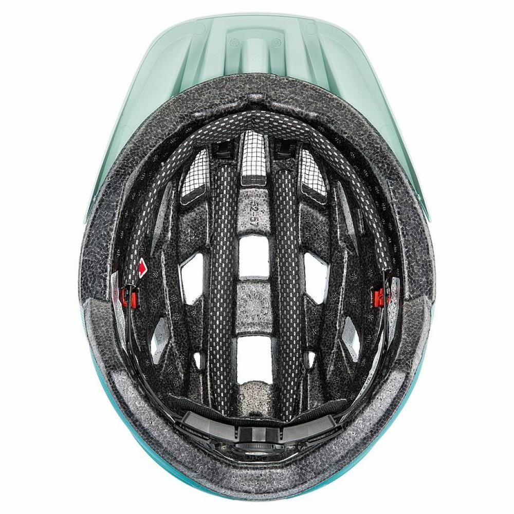 Der uvex i-vo cc in der Farbe Jade-Teal Matt ist ein vielseitiger Fahrradhelm für Damen und Herren, der durch sein geringes Gewicht und seine hervorragende Belüftung überzeugt. Mit einem Gewicht von ca. 260 g und der innovativen Inmould-Technologie bietet er optimalen Schutz bei gleichzeitig hohem Tragekomfort. Die individuelle Größenanpassung erfolgt über das 3D IAS 3.0 System, das eine präzise Einstellung in Höhe und Weite ermöglicht. Für zusätzliche Sicherheit kann der Helm mit einem optionalen Plug-in LED-Licht nachgerüstet werden.